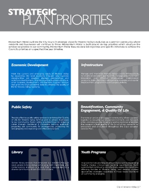 residents and businesses will continue to thrive. Momentum MoVal is built around six top priorities which structure the