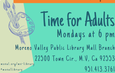 Adults, take time for yourself at the MV Mall to explore ideas and try new activities. Please call 951.413.3761 for more info.